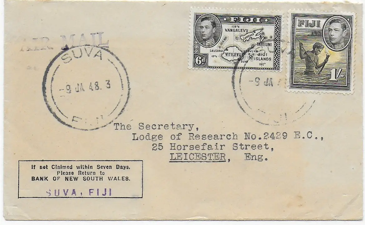 Luftpost Suva, Fiji, 1948 nach Leicester