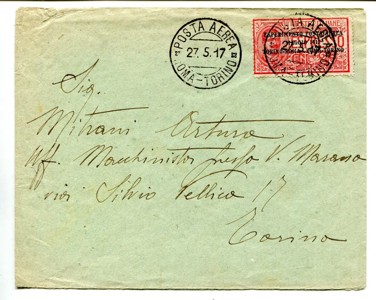 - Luftpost Turin/Rom Nr. 1 isoliert auf Umschlag nach Turin gestempelt mit Sonderstempel vom 27.5.17 (Sächsische Luftbilder Nr. GP 2a) - Umschlag in gutem Zustand - Kat. Euro 475 n. 297/A