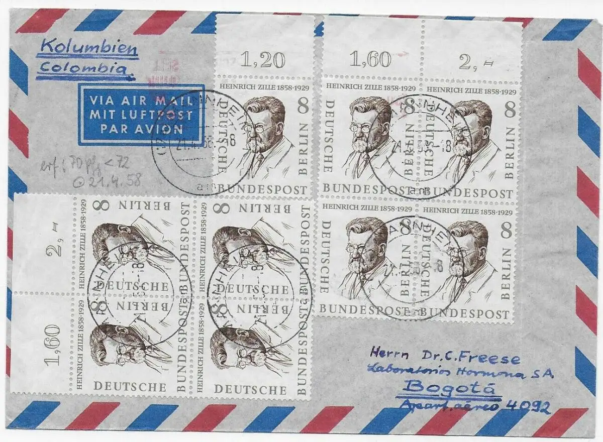Luftpostbrief von Mannheim, 1958 nach Bogotá, Kolumbien, schöne MeF