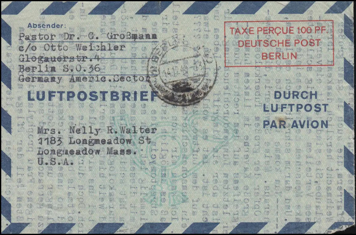 Luftpostfaltbrief LF 1 II zu 100 Pf. Doppellinien BERLIN 14.12.1948 in die USA