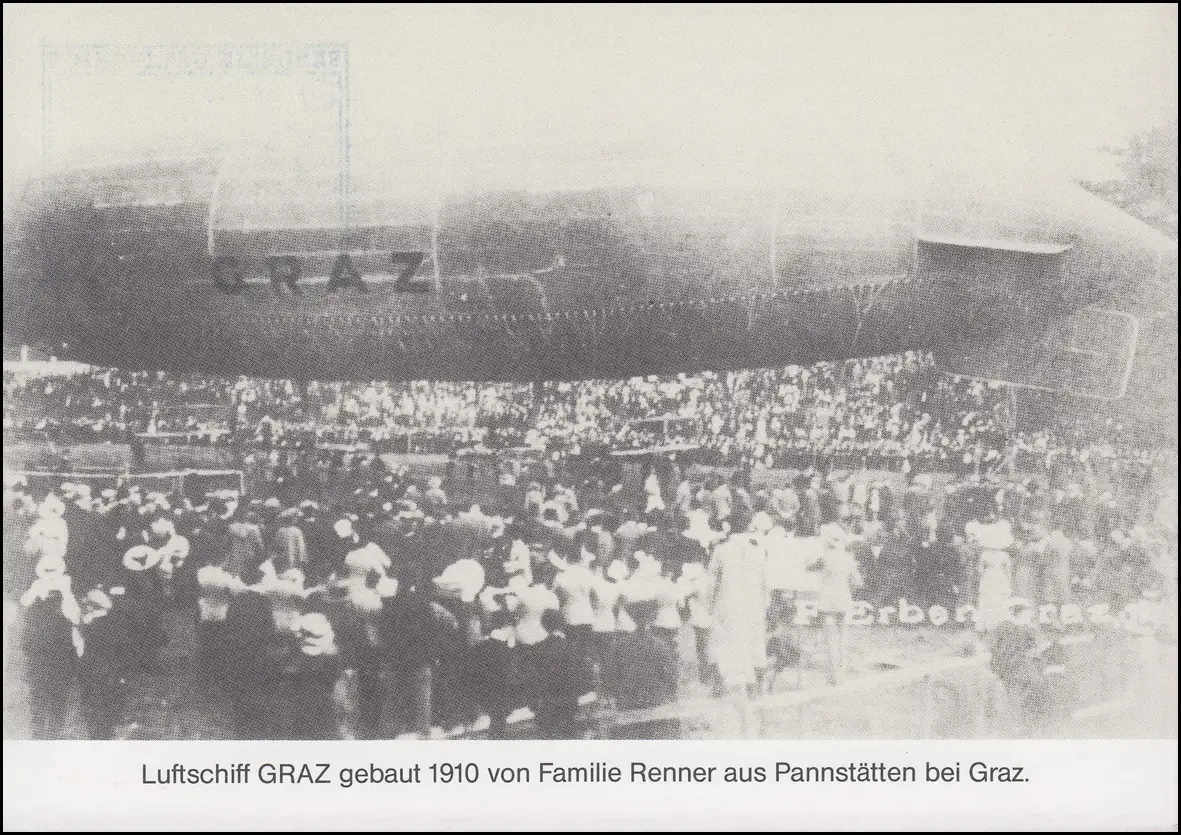 Luftschiffspostbeleg 14. DKL mit Bordstempel HB-BWA PESTALOZZI und grüner Nebenstempel "Jungfernfahrt anläßlich der Fachmesse Münze+;Marke Graz 1992".