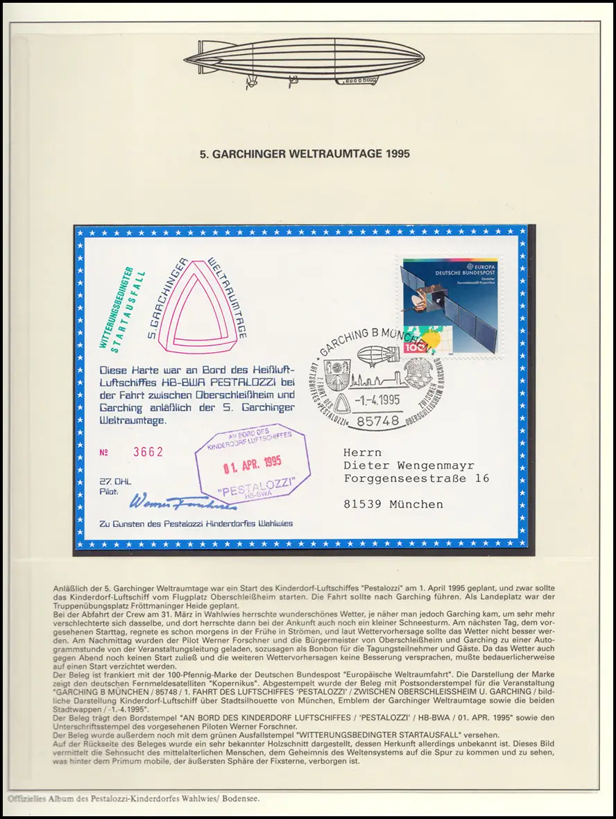 Luftschiffspost DKL 27 PESTALOZZI 5. Garchinger Weltraumtage GARCHING 1995