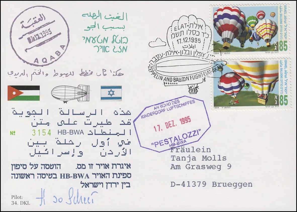Luftschiffspost DKL 34 PESTALOZZI Eilat-Akara-Flug SSt ELAT / EILAT 17.12.1995