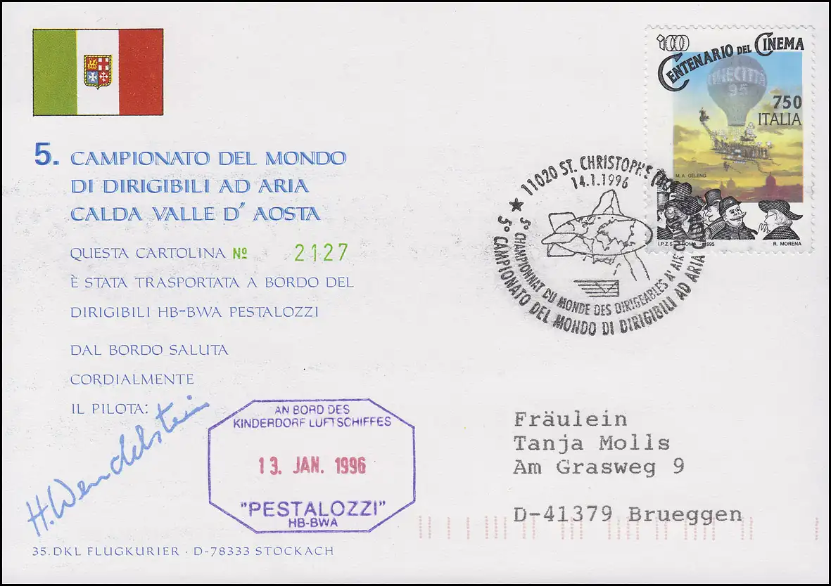 Luftschiffspost DKL 35 PESTALOZZI Haimo Wendelstein ST. CHRISTOPHE 14.1.1996