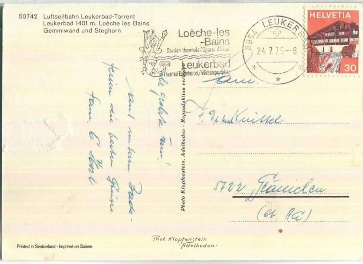 Luftseilbahn Leukerbad-Torrent - Verlag Klopfenstein Adelboden - leichte Gebrauchsspuren (E96260) gel. 1975