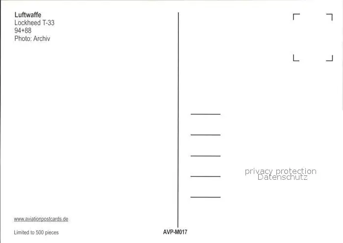 Luftwaffe Lockheed T-33 94+88 Militaria postalisch nicht gelaufen nach 1965 Erhaltung siehe scans Alte Ansichtskarte Postkarte PaolPID1