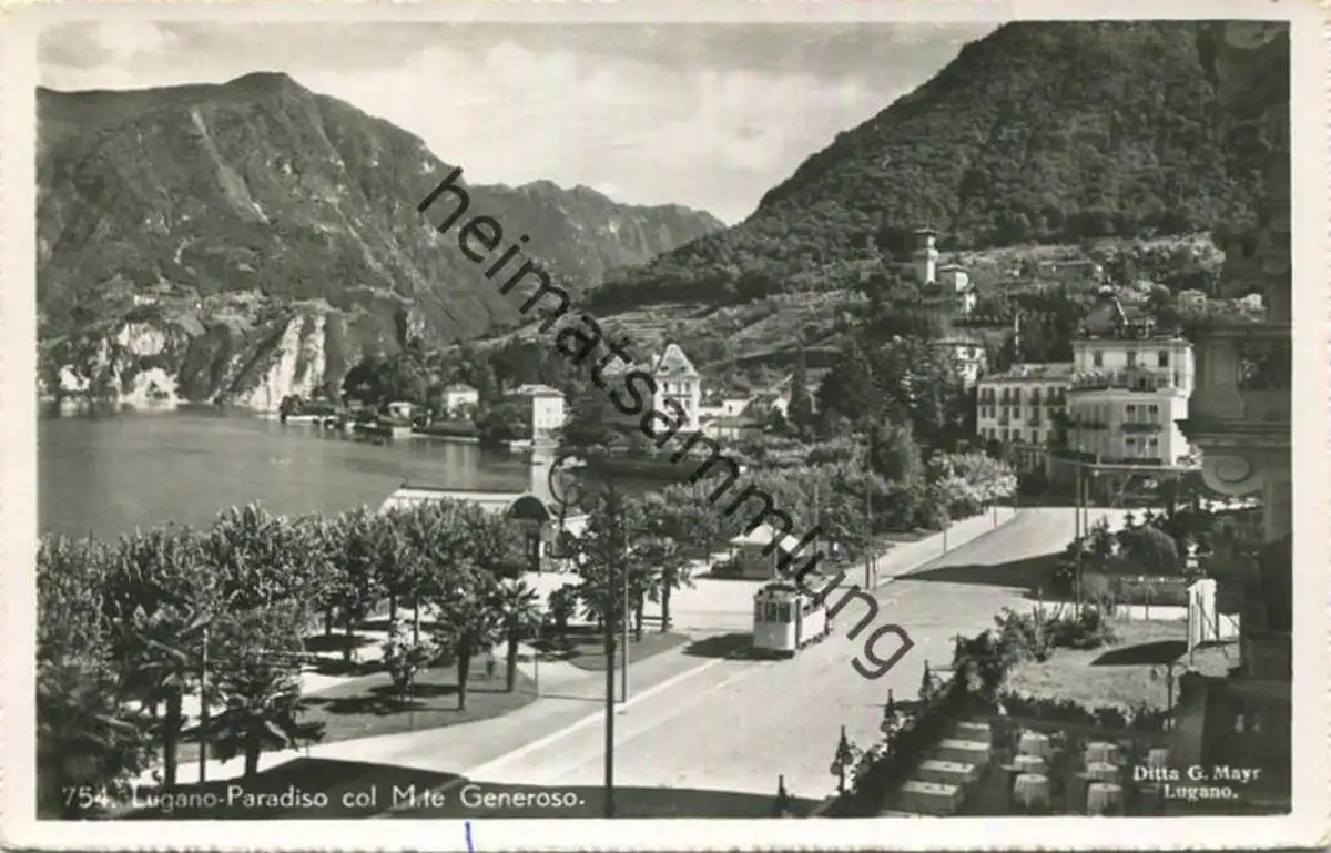 Lugano-Paradiso - col Monte Generoso - Foto-AK - Verlag Ditta G. Mayr Lugano - Strassenbahn - Marke entfernt (E47425) gel. 1953