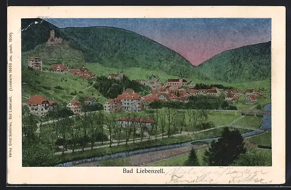Luna-AK Bad Liebenzell, Teilansicht mit Kirche