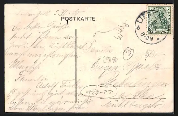 alte Ansichtskarte, gelaufen 1910, Eckknick li. oben, guter Zustand