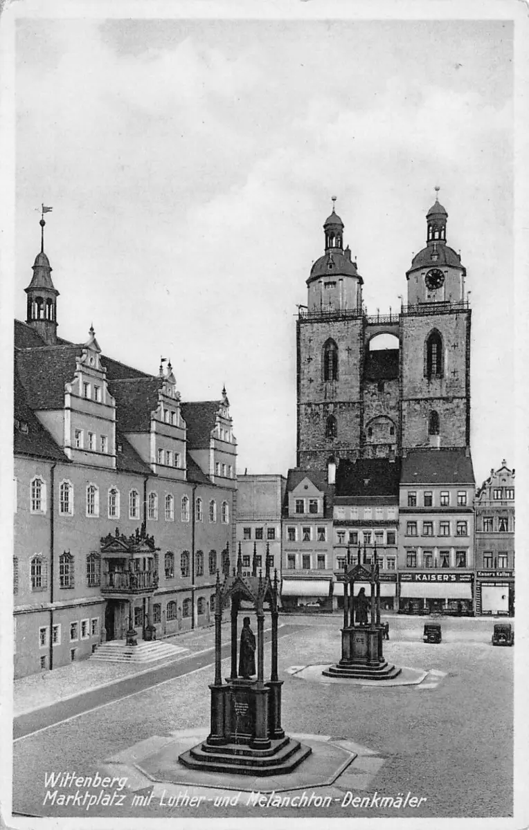 Luther und Melanchthon Denkmäler, Marktplatz Wittenberg Sachsen-Anhalt Postkarte