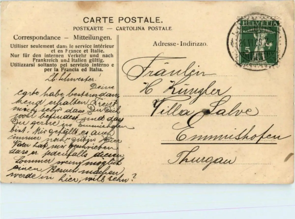 Danke. Alles Bestens. Können Sie mir allenfalls mitteilen, aus welchem Jahr die Postkarte stammt? Besten Dank.