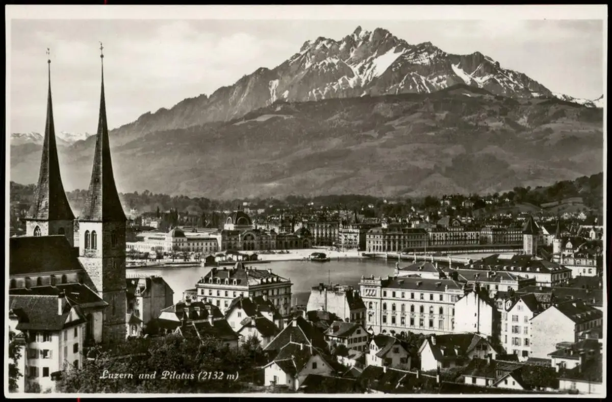 Luzern Lucerna Panorama-Ansicht mit Blick z. Pilatus (Berg Schweiz) 1940