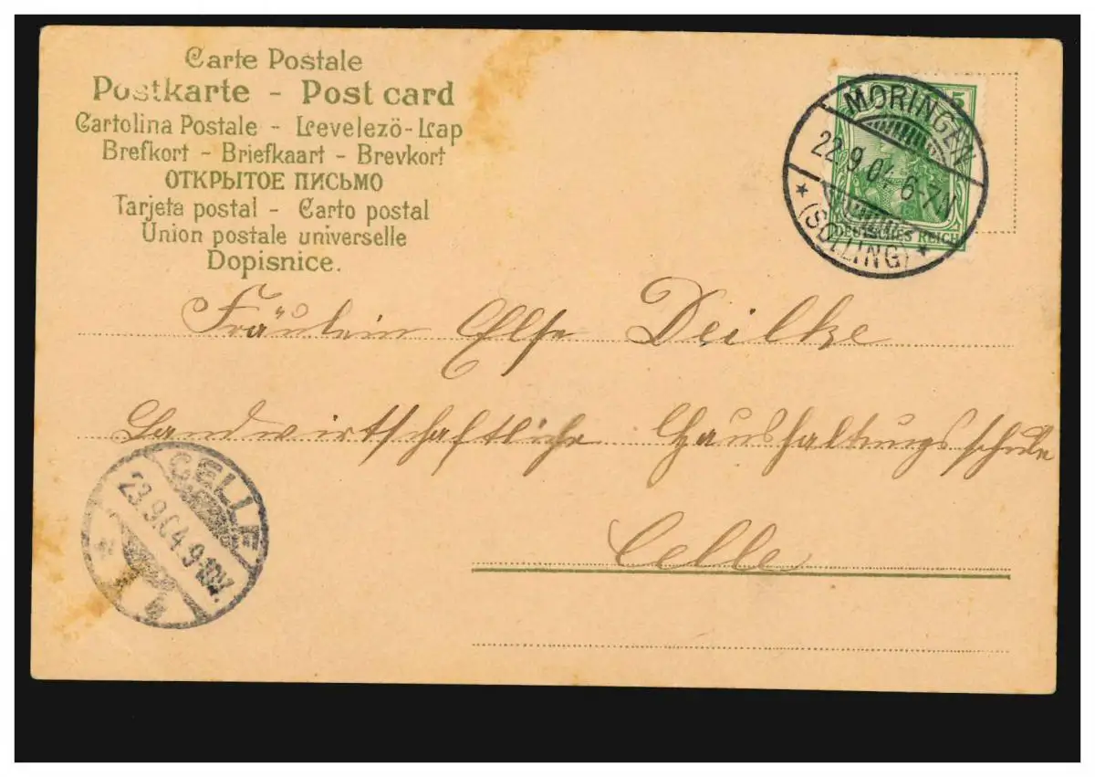 Lyrik-AK Blumengesteck, passendes Gedicht Blumengrüsse, MORINGEN (SOLLING) 1904