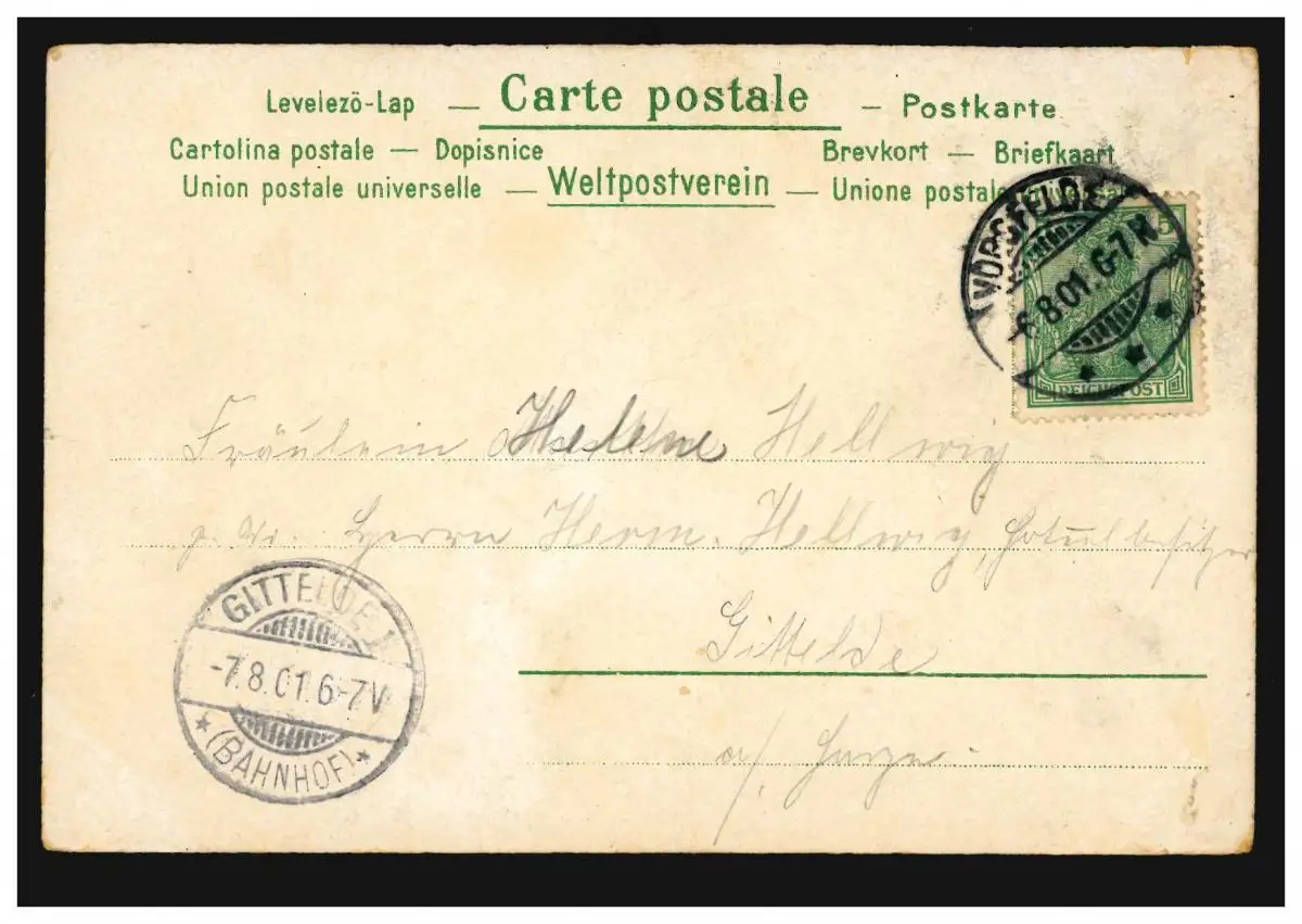 Epik Drama Poem, Ankunftsstempel GITTELDE (BAHNHOF) 7.8.1901