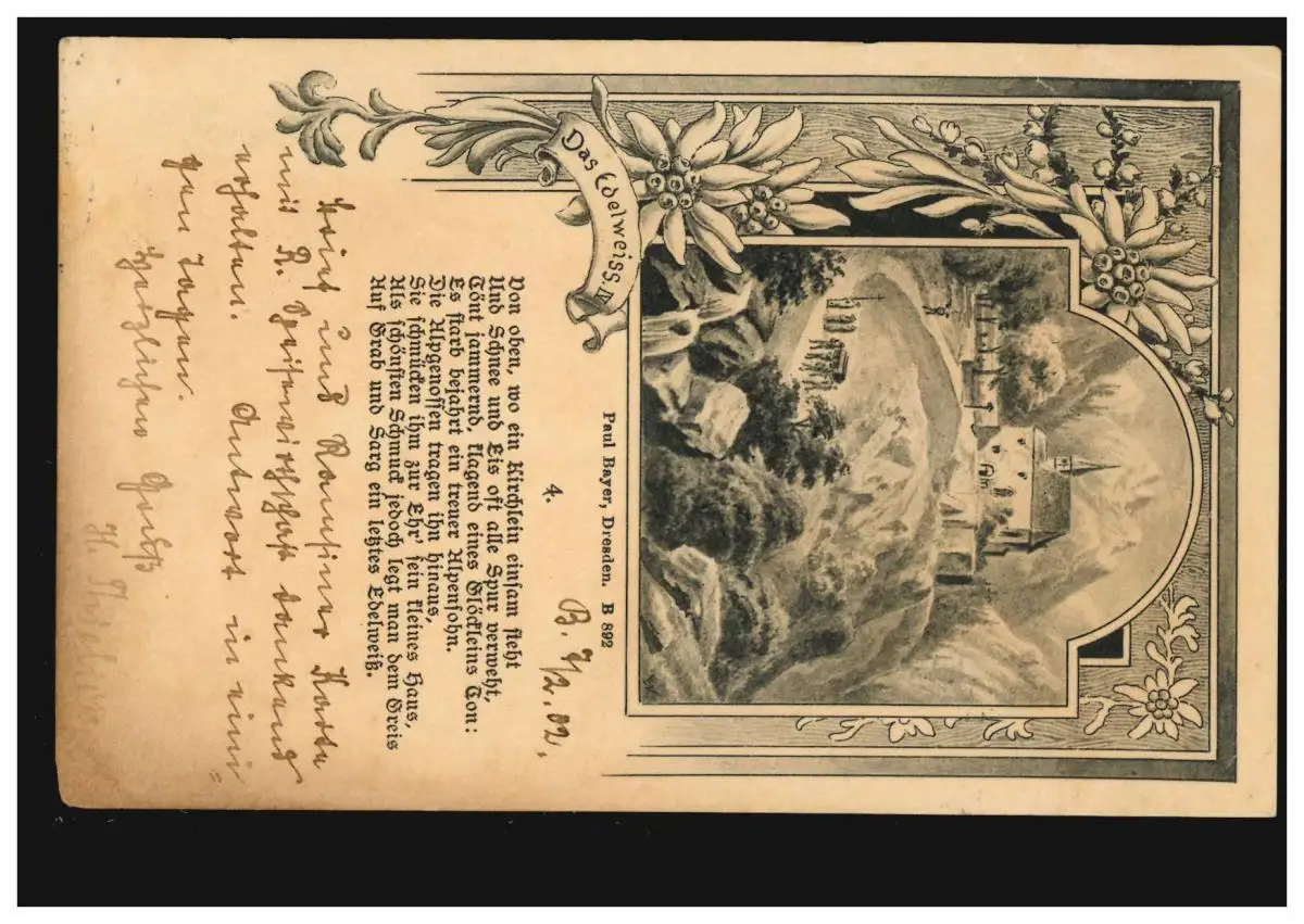 Lyrik-AK Paul Bayer: Das Edelweiß IV. Kirche und Beerdigung, BERLIN 8 e 7.2.1902