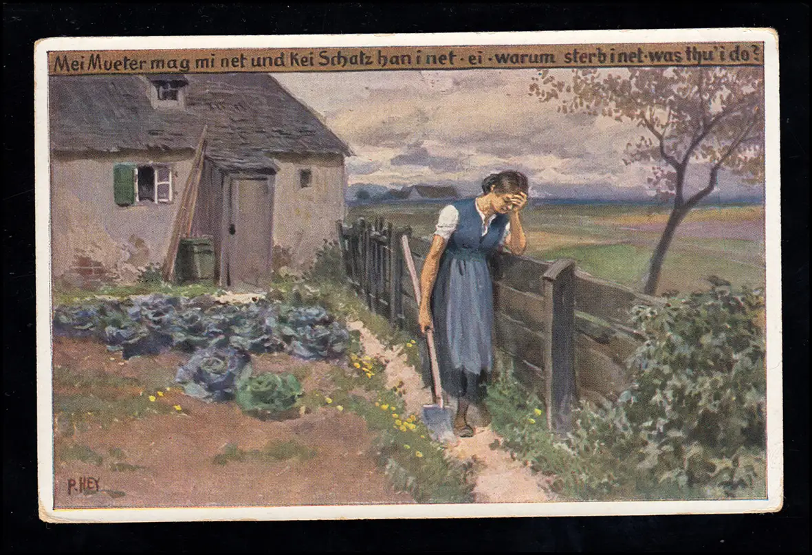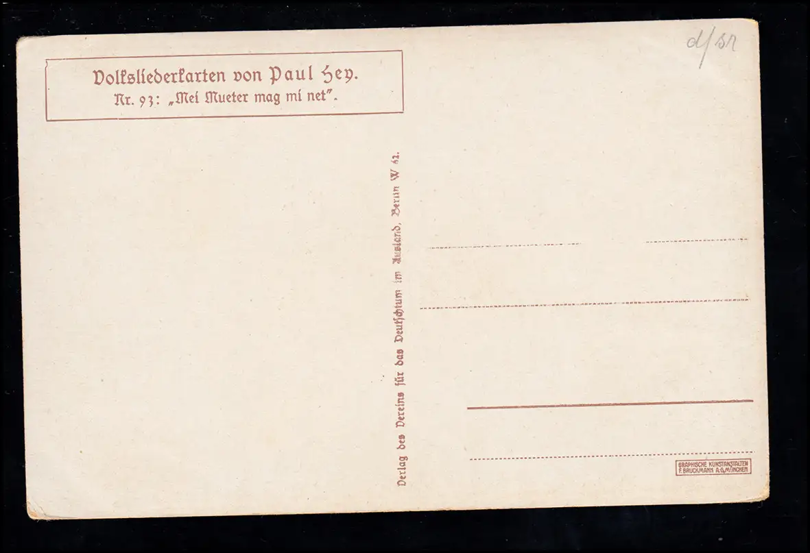 Lyrik-AK Volksliederkarte Paul Hey: Mei Mueter mag mi net, ungebraucht