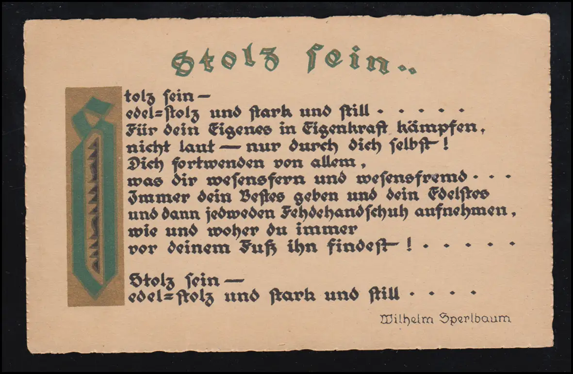 Lyrik-AK Wilhelm Sperlbaum: Stolz sein ..., ungebraucht