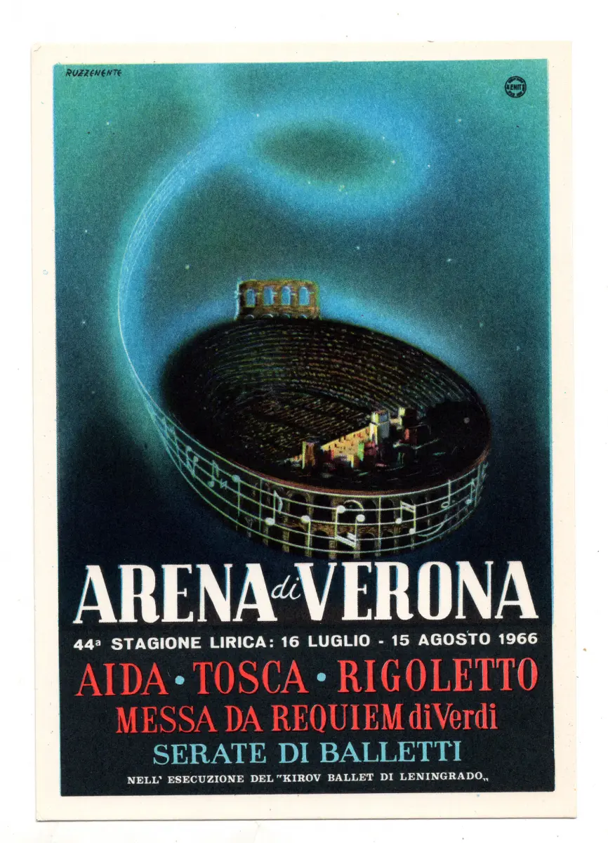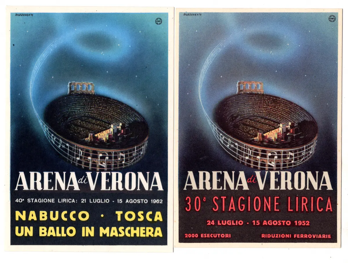 Lyrik - Lot von drei Postkarten von Ruzzenente - Lirica - Lot von drei Postkarten, die von Ruzzenente Arena di Verona für die 30., 40. und 44. Opernsaison gezeichnet wurden - neu in sehr gutem Erhaltungszustand Nr. 646/20