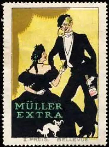 Sekt, II. Preis, Bellevue, Hund, Größe/Zustand: 6x5 , guter Zustand, Original alte Reklamemarke die seinerzeit für die Werbung benutzt wurde