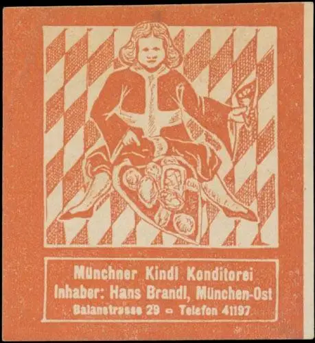 Inhaber Hans Brandl, Balanstraße 29, Bäckerei, Größe/Zustand: 5x5 , fleckig, Original alte Reklamemarke die seinerzeit für die Werbung benutzt wurde