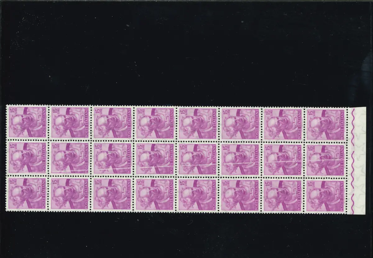 MNH - Vollgummi - MICHELANGIOLESCA 15 L. BLOCK MIT 24 GROSSEN WEISSEN ZEILEN IN DER MITTE Cod. ITAV_1598