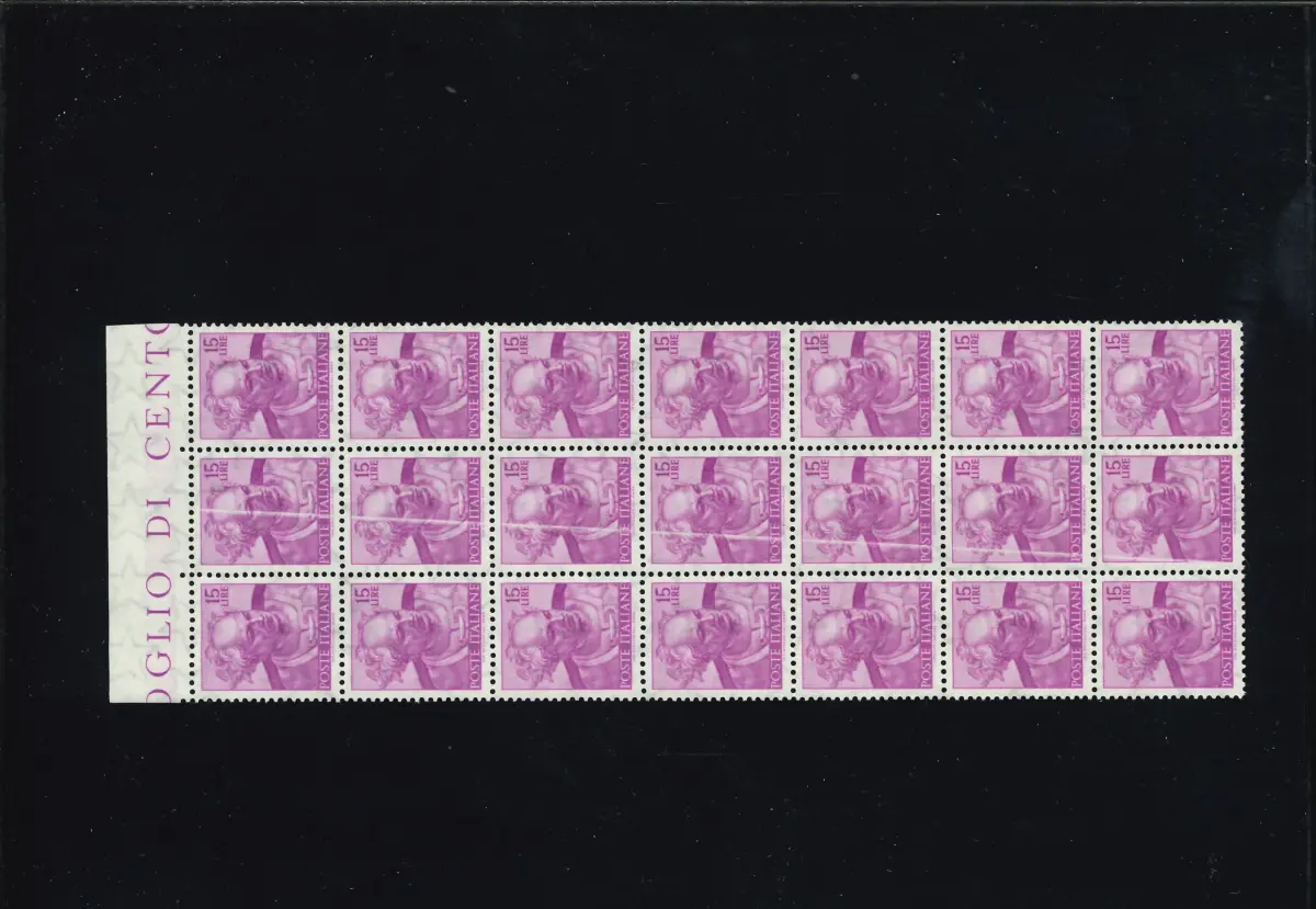MNH - Vollgummi - MICHELANGIOLESCA S I BLOCK VON 21 MIT ZENTRALER VETIKALER LINIE Cod. ITAV_1587