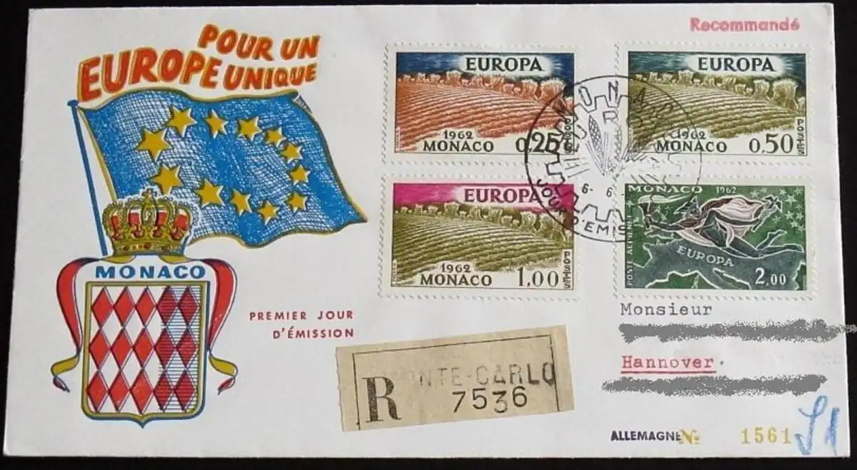 MONACO 1962 Mi-Nr. 695/98 CEPT FDC
