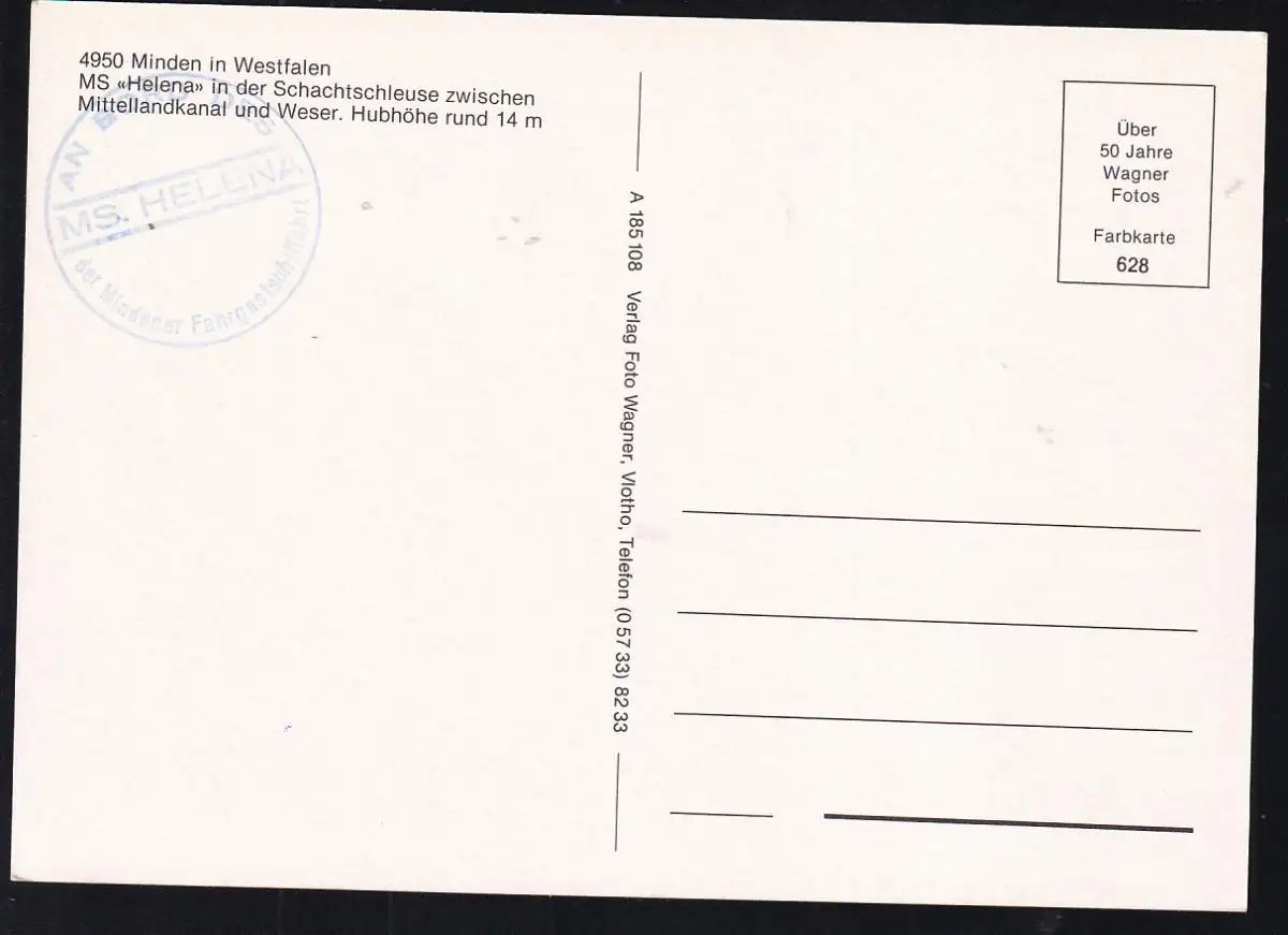 MS "Helena" in der Schachtschleuse zwischen Mittellandkanal und Weser
