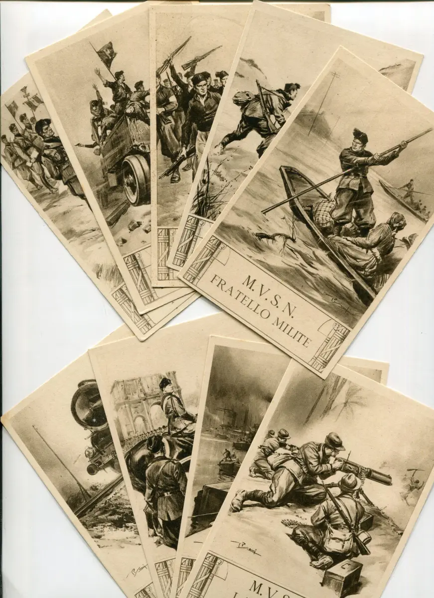 M.V.S.N. - 10 Postkarten für die verschiedenen Milizen Postkarte - M.V.S.N. - 10 Postkarten für die verschiedenen Milizen von Vittorio Pisani entworfen - nicht gereist - Selten zusammen in sehr gutem Erhaltungszustand Cod. 53/14