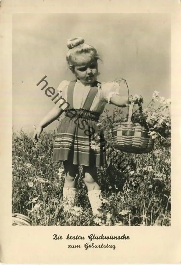 Mädchen auf der Blumenwiese - Foto-AK Grossformat - Heldge-Verlag Köthen - DDR 1956