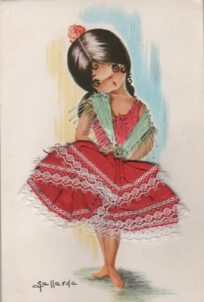 Mädchen mit echt aufgeklebtem Rock - ca. 1975