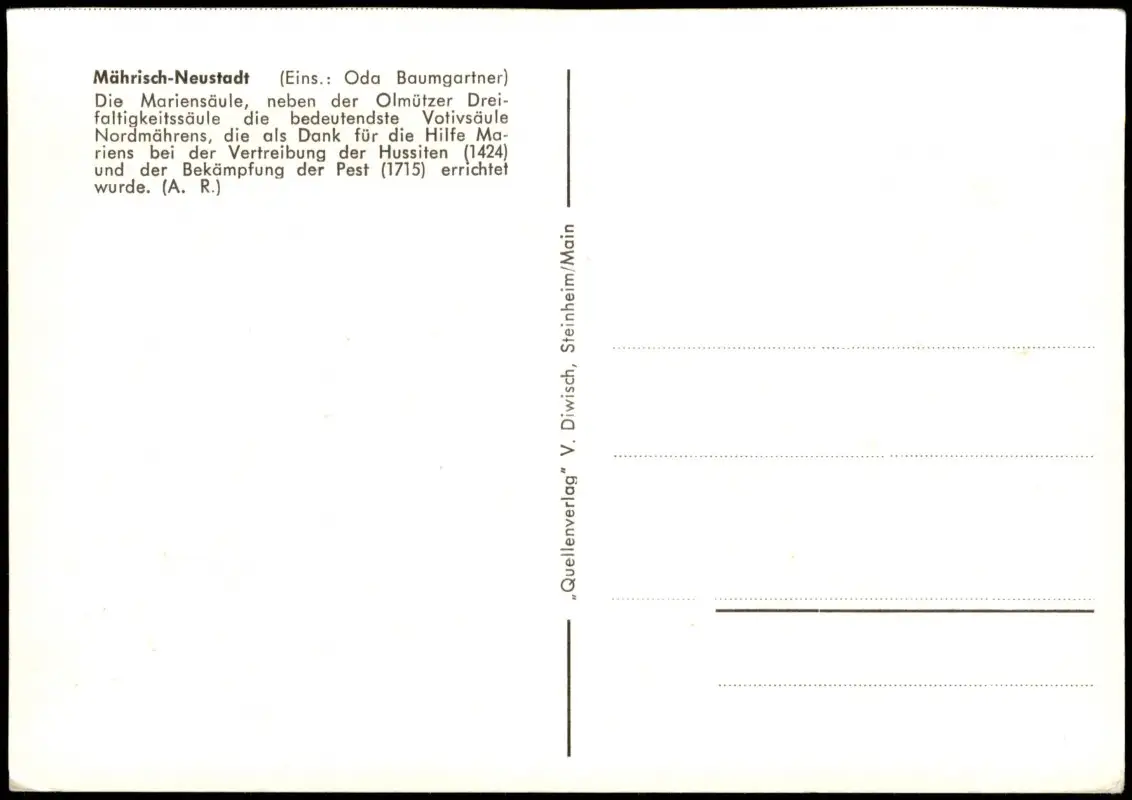 Mährisch Neustadt Uničov Ortsansicht Partie a.d. Mariensäule (Reproansicht) 1980
