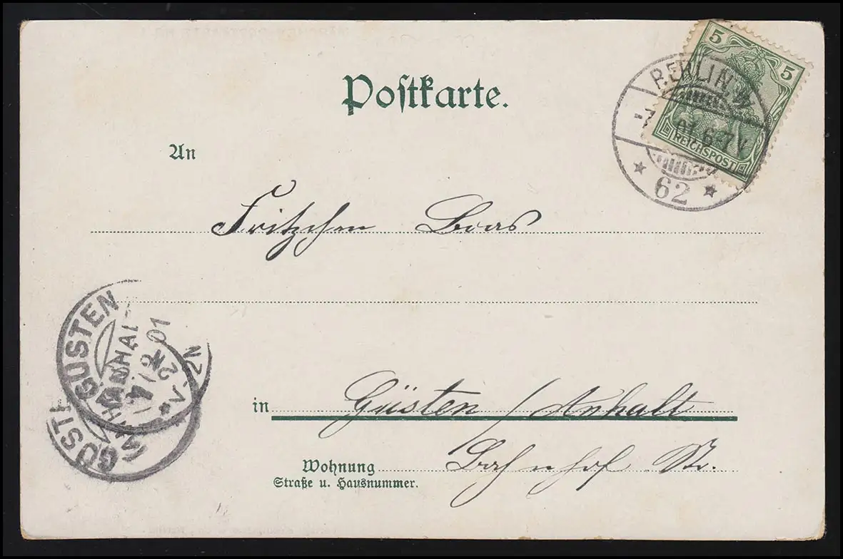 Märchen Postkarte No 1 "Haensel & Grethel" gehen in Wald BERLIN/ GÜSTEN 7.1.1906