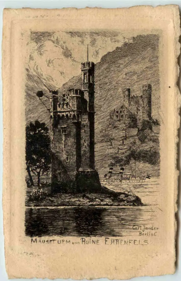 Mäuseturm und Ruine Ehrenfels - Radierung -660216