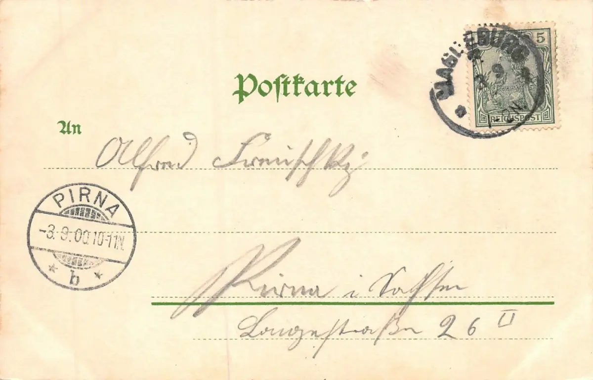 Rückseite: gelaufen 1900 von Magdeburg von Pirna