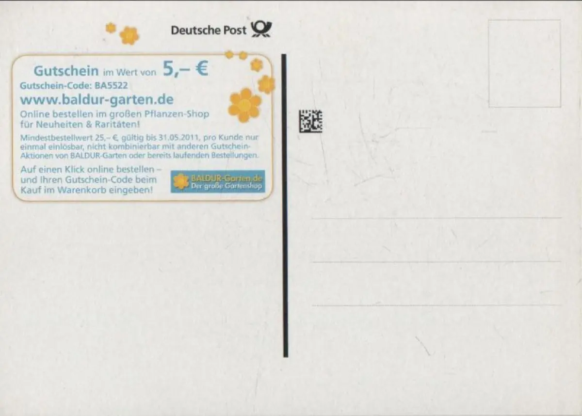 Ich hatte die Rechnung sofort als Vorkasse bezahlt, aber keine Zusendung der Karte erhalten. Trotz Nachfrage keine Rückmeldung bzw. Erklärung. Da es sich zum Glück nur um 1,70 € handelt, ist die Sache für mich erledigt, ärgerlich, aber zu verkraften. Mit den drei anderen Karten, die ich bestellt hatte, hat alles wunderbar geklappt.
