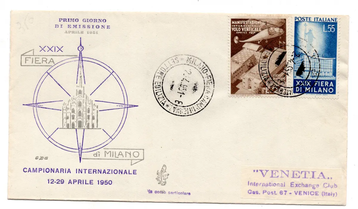 Mailand '51 auf Umschlag Venetia im Sonderkurs Umschlag - Mailand '51 Nr. 657/658 Serie auf Umschlag nach Venedig im Sonderkurs (ohne Ann. Ankunft) - Ungewöhnlich Cod. 395/14