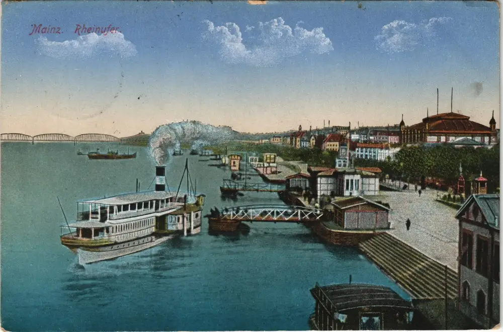 Mainz Rheinufer - Anlegestelle, Rheindampfer - gel. Feldpost 1915