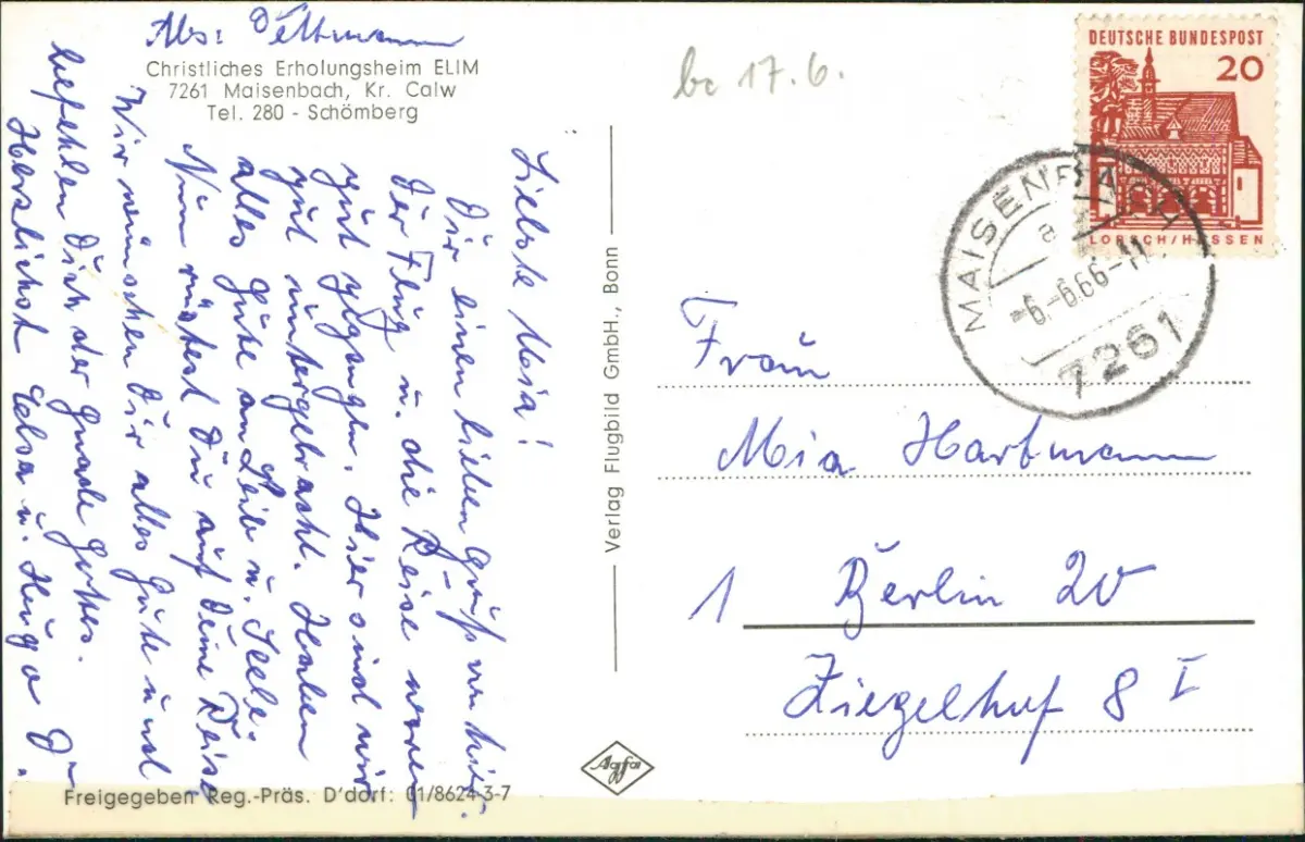 Maisenbach-Calw Luftbild Christliches Erholungsheim Kr. Calw 1966