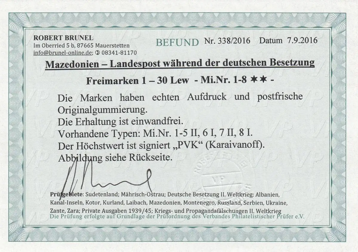Makedonien: Landespost MiNr. 1-8, verschiedene Typen, postfrisch