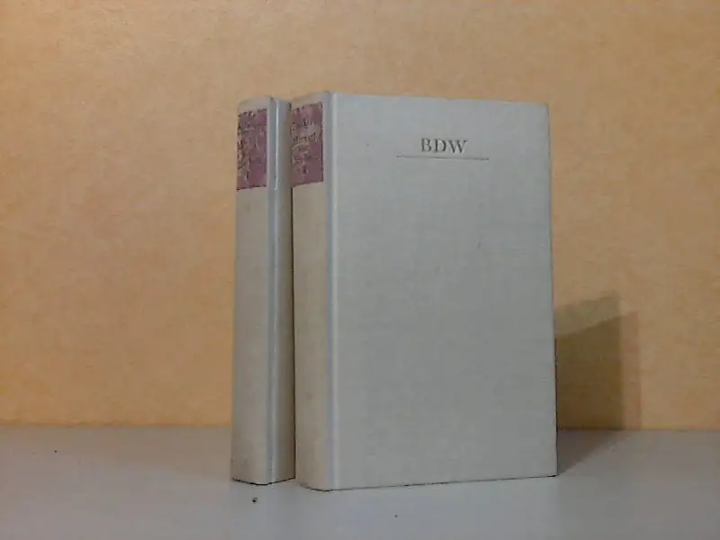 die Seiten und der Einband sind altersbedingt fleckig, die Schrift auf dem Rücken und Einband ist teils abgegriffen, ERSTER BAND: Während der Direktor des Puppentheaters vor dem Vorhang auf den Brettern sitzt und über den Jahrmarkt schaut. befällt ihn beim Anblick des bunten Treibens eine tiefe Melancholie. Da wird gegessen und getrunken, geliebt und kokettiert, gelacht und geweint, geraucht, betrogen, gestritten, getanzt und gegeigt, da drängen sich Großmäuler im Getümmel, Stutzer machen Frauen schöne Augen, Spitzbuben leeren Taschen, und Polizisten sind auf der Wachtda schreien Quacksalber (andere Quacksalber, die Pest soll sie holen!) vor ihren Buden, und Bauerntölpel starren zu den flitterglänzenden Tänzerinnen und den armen, alten, geschminkten Clowns hinauf, während die Langfinger sich hinten an ihren Taschen zu schaffen machen. ... ZWEITER BAND: Die Nachricht von den Schlachten von Quatre-Bras und Lterloo kam zu gleicher Zeit nach England. Die „Gazette" veröffentlichte zuerst das Ergebnis der beiden Schlachten, und ganz England bebte in Triumph und Furcht. Später folgten dann Einzelheiten, und nach der Verkündigung der Siege kam die Liste mit den Verwundeten und Gefallenen. Wer kann die Angst beschreiben, mit der dieses Verzeichnis gelesen wurde! Man stelle sich vor, welche Gefühle von Begeisterung und Dankbarkeit, von Schmerz und Verzweiflung in fast allen Dörfern und Häusern herrschten. als die Siegesbotschaft aus Flandern kam und man die Verlustlisten der Regimenter durchging und erfuhr, ob der teure Freund und Verwandte davongekommen oder gefallen war. ... (aus den Büchern) Beschreibung vom Antiquariat Ardelt 3j1b Antiquariat Ardelt
