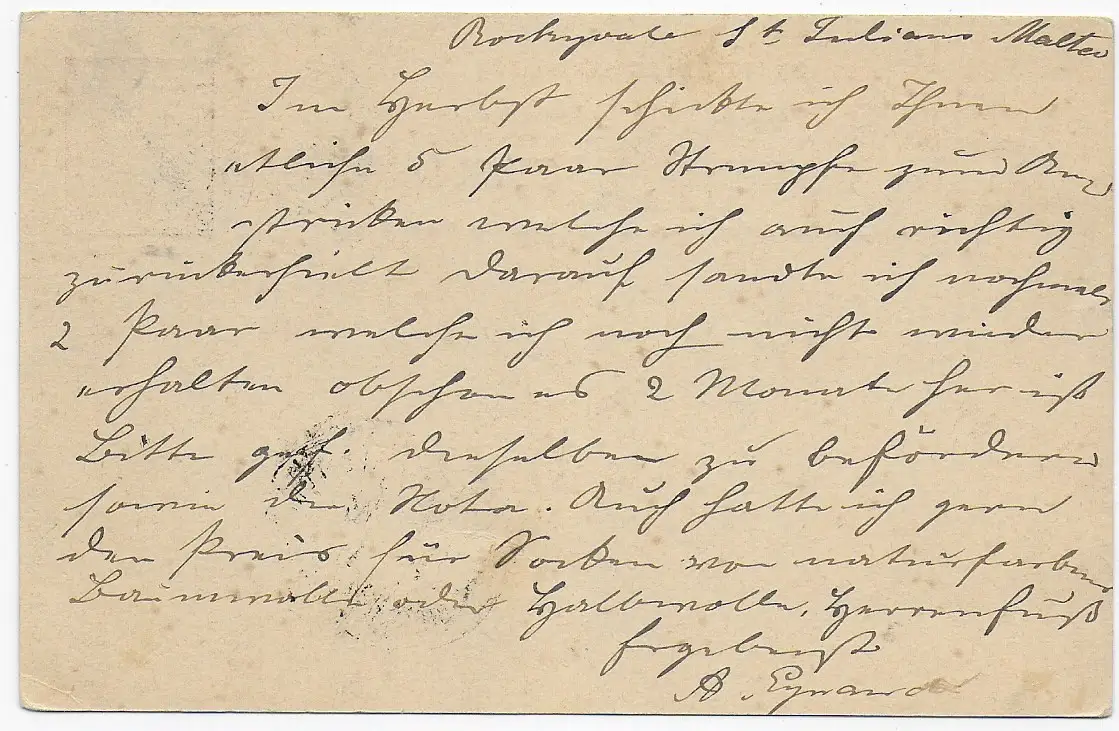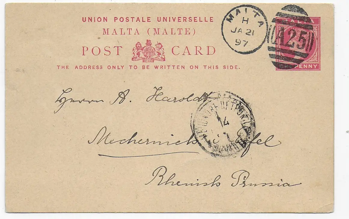 Malta 1897, Ganzsache, Irrläufer nach Russland