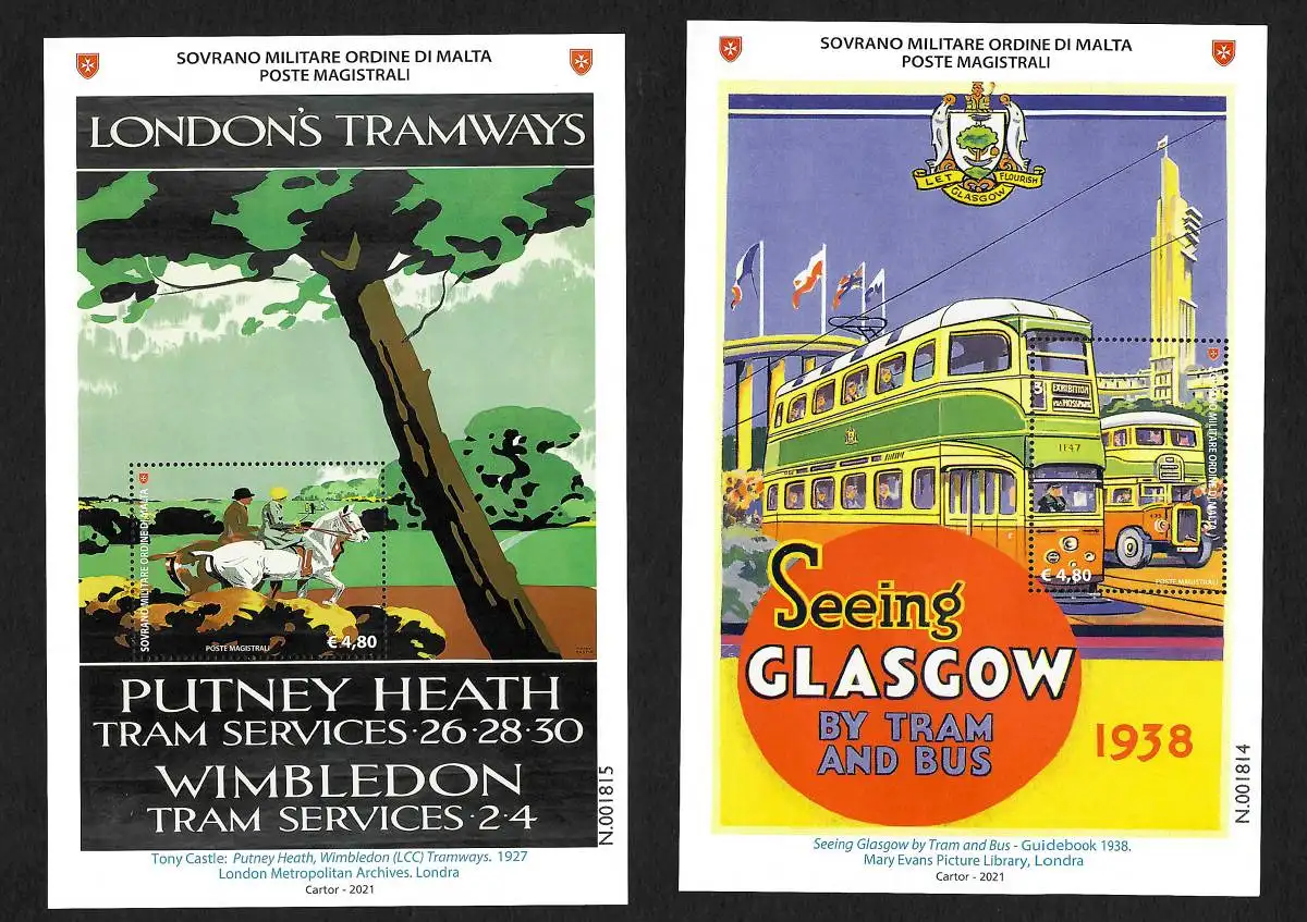 Malta 2021: Nostalgische Werbeplakate: London's Tramways, Wimbledon 2x Blocks **