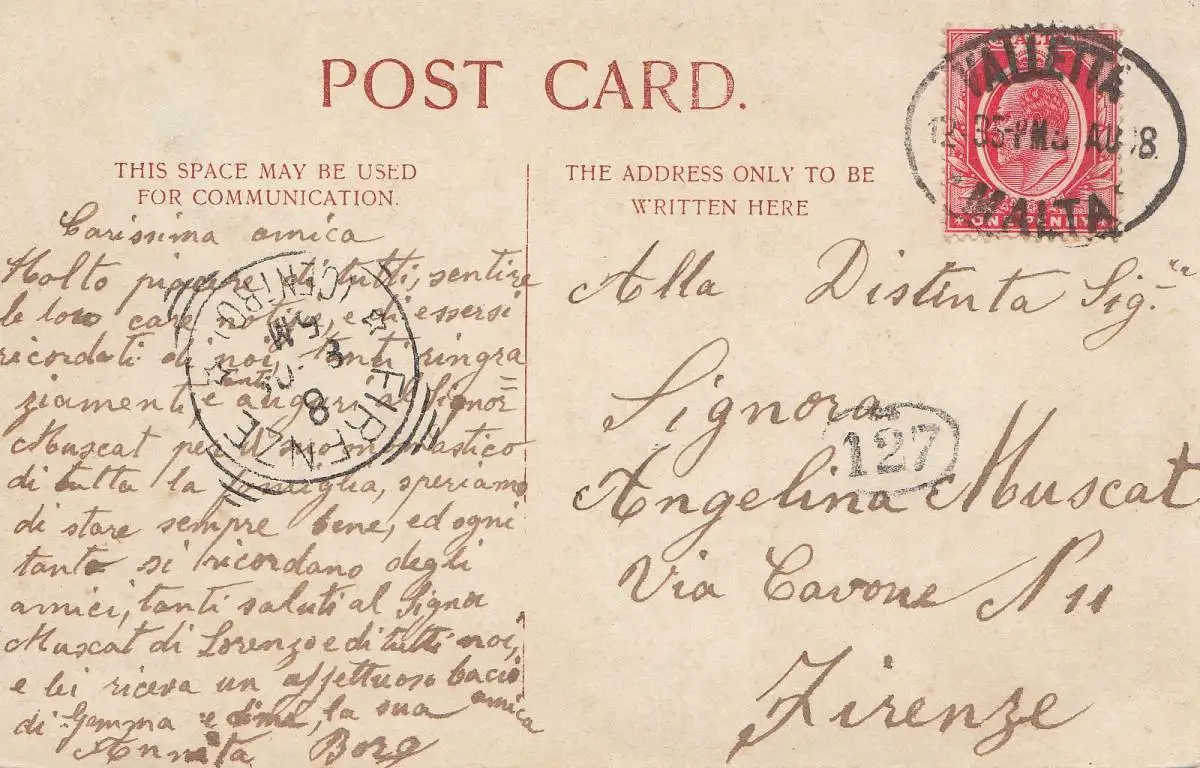 Malta: Ansichtskarte nach Firenze