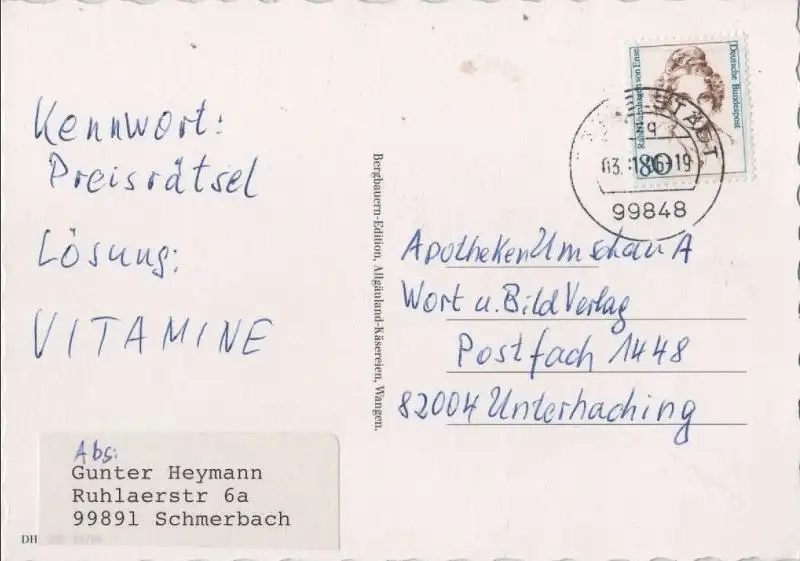 Ich hatte die Rechnung sofort als Vorkasse bezahlt, aber keine Zusendung der Karte erhalten. Trotz Nachfrage keine Rückmeldung bzw. Erklärung. Da es sich zum Glück nur um 1,70 € handelt, ist die Sache für mich erledigt, ärgerlich, aber zu verkraften. Mit den drei anderen Karten, die ich bestellt hatte, hat alles wunderbar geklappt.