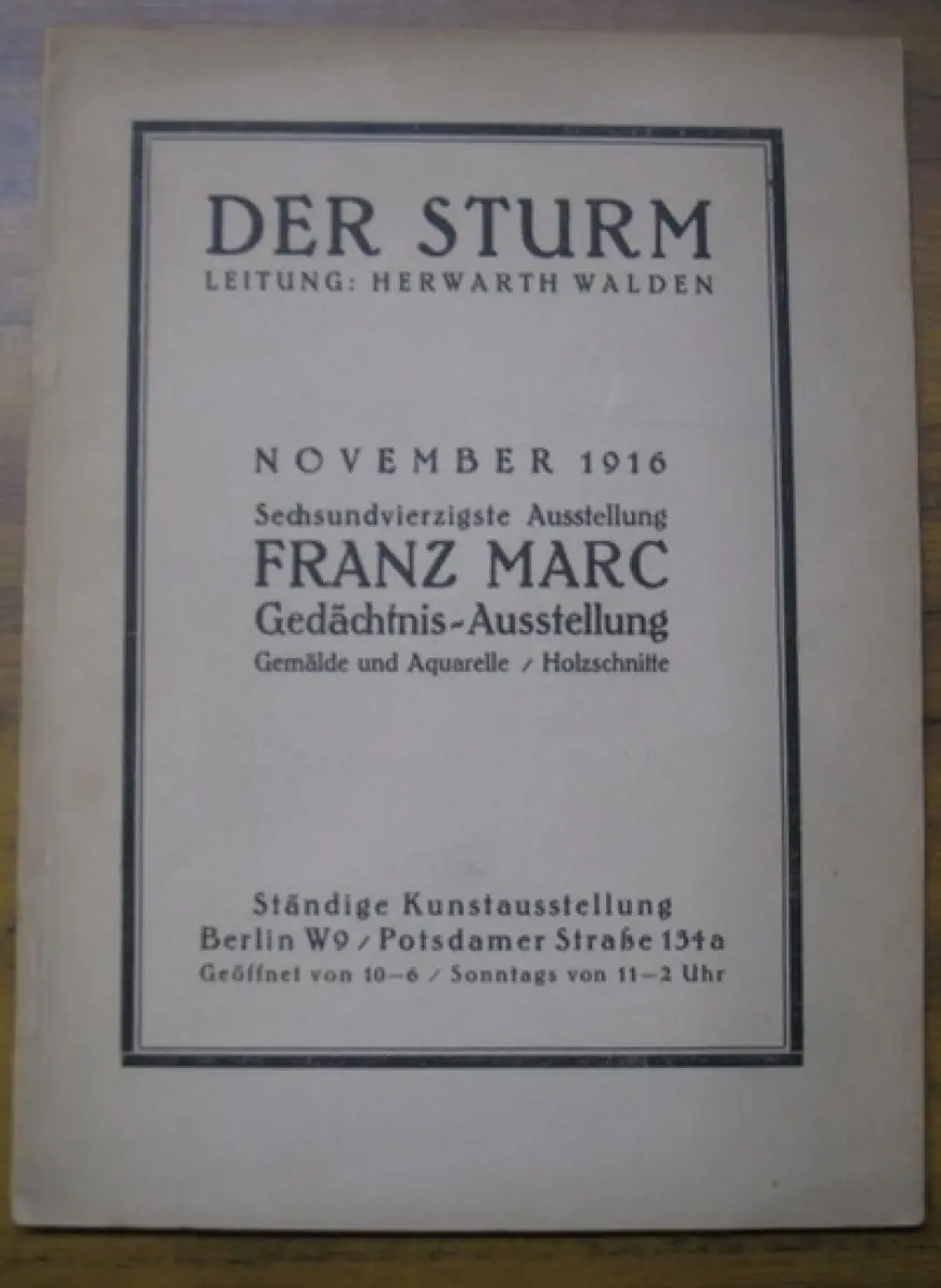 Marc, Franz. - Herwarth Walden. - Der Sturm: Franz Marc Gedächtnis-Ausstellung. Gemälde und Aquarelle / Holzschnitte. Sechsundvierzigste (46.) Ausstellung November 1916 Der Sturm, Leitung Herwarth Walden.