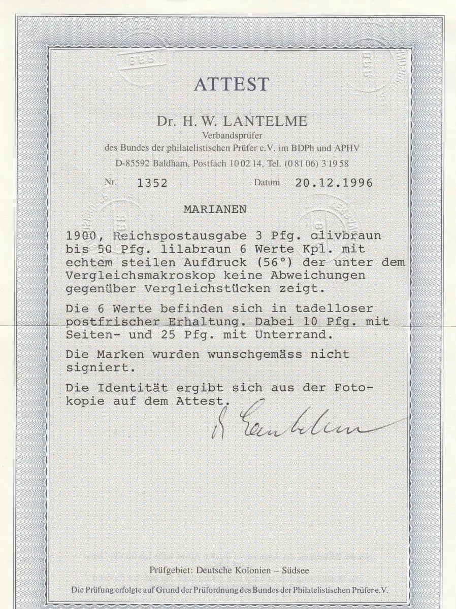 Marianen: MiNr. 1-6 II, postfrisch, BPP Attest