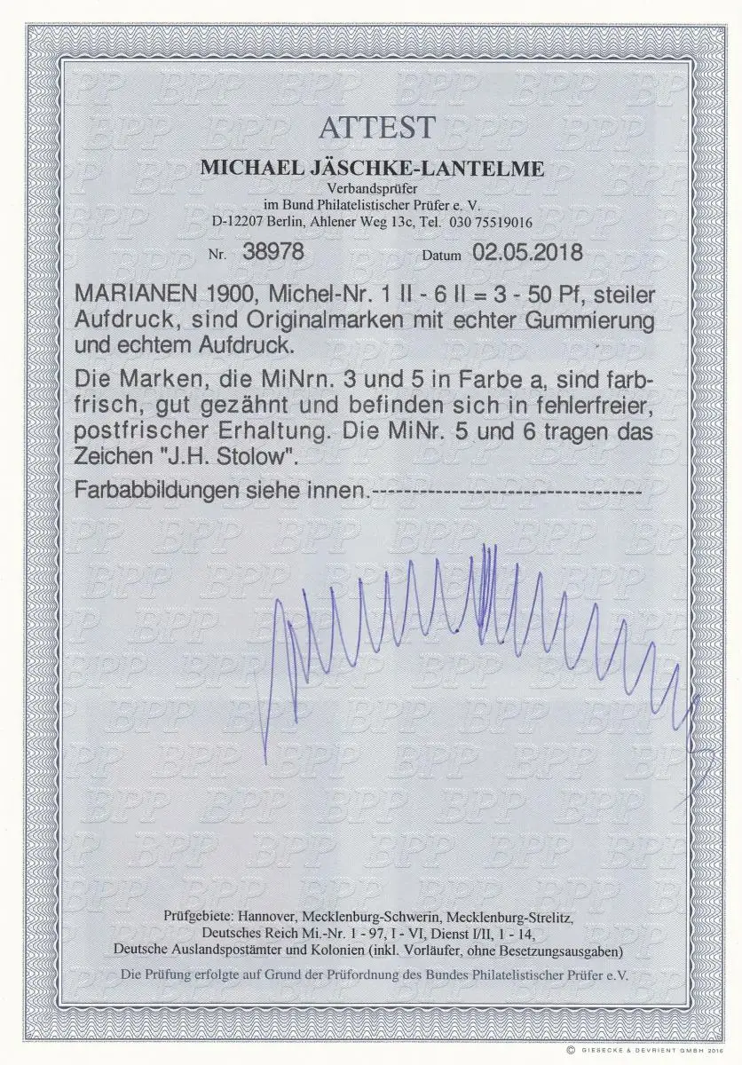 Marianen: MiNr. 1II - 6II, postfrisch, BPP Attest