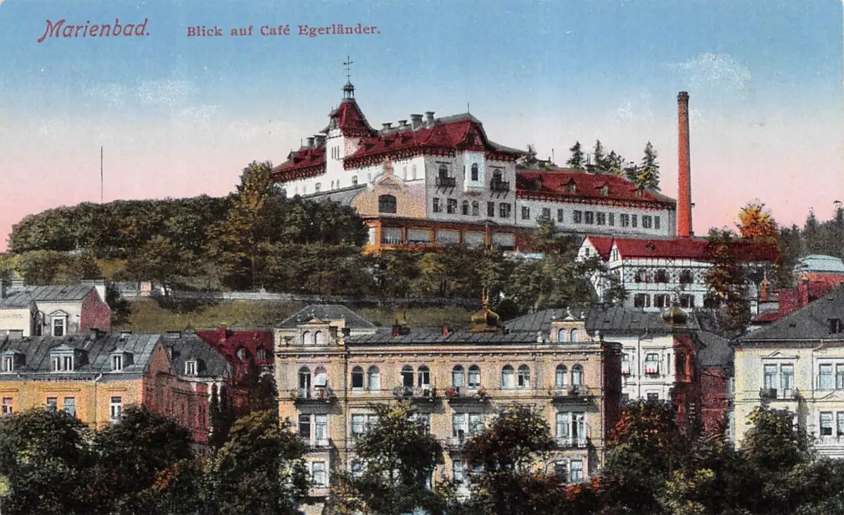 Marienbad Blick auf Café Egerländer Postkarte AK