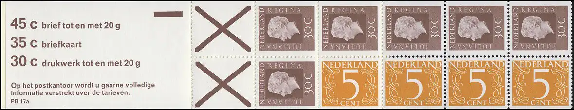 Markenheftchen 17 Juliane und Ziffer 1974, 3 Tarife und PB 17a, **